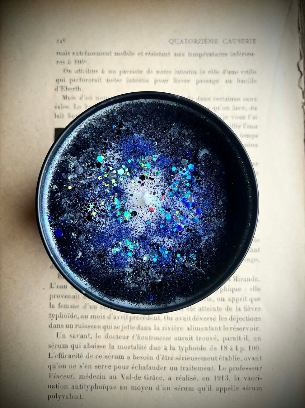 Les bougies Trésor Sacré renferment un secret précieux : un pendentif en pierre naturelle caché dans la cire, attendant d'être révélé par la flamme.